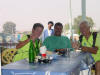 The road is fairly flat, a few little rolls. There are no towns or even stores or restaurants on the route. Though stops were missing there was no shortage of well wishers in the fields and along the roadside. The people look poor and dirty. Their job, cutting plowing etc. is a hard and dirty job. They, mostly women, sit on the ground pulling the vines up and putting peanuts in bags. Almost everything is done by hand or horse and donkey pulled wagons and plows. There are big tractors that must be just for the big jobs.