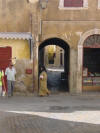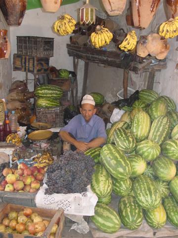 We asked how much to town and back, the driver quoted 100 Dirham. We asked how much just into town and he said, "10 Dirham". That is the regular, local's price. I climbed into the back seat with the two guys and waved to Pat out the back window. Feeling reluctant, I sang out, Bonjour in my best French. The others completely ignored me. I tried to settle back but really felt uncomfortable in the silence or occasional Arabic chatter. In the typical Moroccan Taxi, none of the windows would open so we all just sat and sweated.
