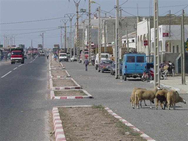 The sun was high and hot when we were out in it but a sea breeze cooled us as we rode. Late in the afternoon the breeze whipped up a bit but all in all it was a good ride. We are both tired and weary from waving and calling out to folks along the road. Kenitra is an industrial town. Our first sighting was a twin stack electric generating station. Next we were greeted by smoke from the smoldering dump. Not a landfill but big piles of trash scattered across a huge open space. One of the worst visual blights here is plastic sheeting that has been used for fencing, has been beaten by the wind and dried in the hot sun. There are shreds of black, blue and clear plastic virtually everywhere. The smoke and acidic, toxic smell of burning garbage and plastic filled the street, the air and our lungs. Our eyes and chests burned as we pushed to escape the cloud of fumes.