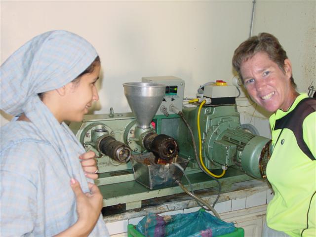 While the cooking show was going on the girls led Cat to a room across the courtyard, dressed her and themselves in traditional gowns and taught her how to do the local dance. The music blared from a boom box as they gyrated and stomped. They also gave us a demonstration of the shrill sound that Muslim woman make.